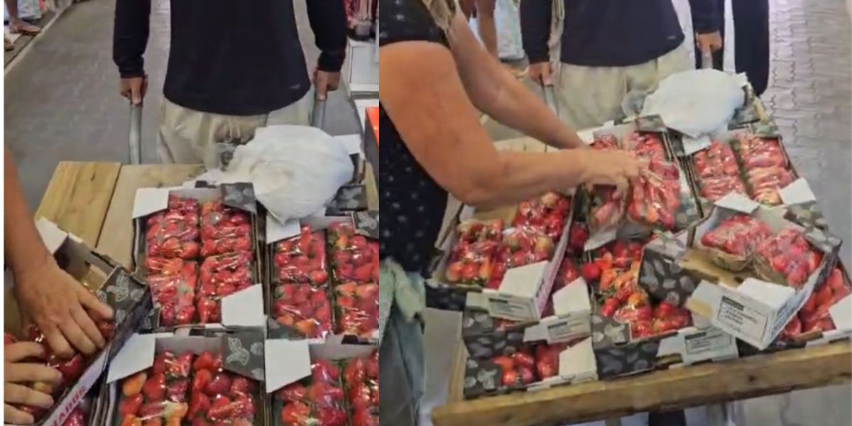 - Registros anteriores mostram o vendedor chutando caixas de morango durante fiscalizações no camelódromo.