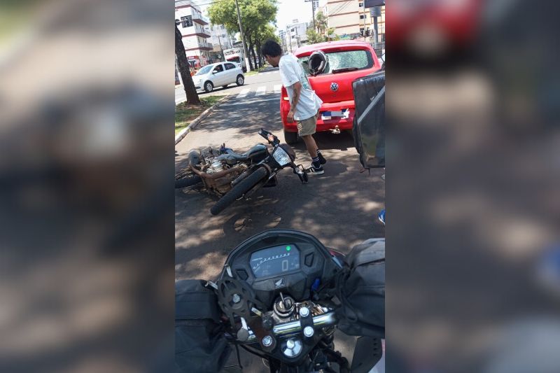 Um motociclista foi socorrido pelo Corpo de Bombeiros após uma colisão traseira contra um carro de passeio no final da manhã desta quarta-feira (21), em Chapecó, no Oeste de Santa Catarina. O acidente ocorreu no cruzamento da Avenida Fernando Machado com a Rua Vitorio Cella.